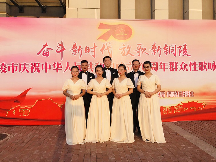 為慶祝中華人民共和國成立70周年,由銅陵市委宣傳部主辦,全市黨政機(jī)關(guān)、企事業(yè)單位、社會(huì)團(tuán)體24支代表隊(duì)近2000人參與的“奮進(jìn)新時(shí)代,放歌新銅陵”群眾性歌詠比賽于近日落下帷幕。我公司七名員工作為銅陵經(jīng)開發(fā)區(qū)代表隊(duì)成員參與了此次活動(dòng)。活動(dòng)從組隊(duì)、排練、參演、預(yù)賽、決賽歷時(shí)二個(gè)多月,各參賽隊(duì)精心準(zhǔn)備,均邀請(qǐng)了歌詠比賽專家利用業(yè)余時(shí)間對(duì)歌曲曲目的高低聲部、齊唱、合唱進(jìn)行訓(xùn)練練習(xí),此次活動(dòng)各行各業(yè)干部群眾廣泛參與,演唱水平層次高,準(zhǔn)備充分,在全市掀起了濃厚的合唱藝術(shù)氛圍,充分表達(dá)了全市人民愛國愛家鄉(xiāng)的深厚情感。